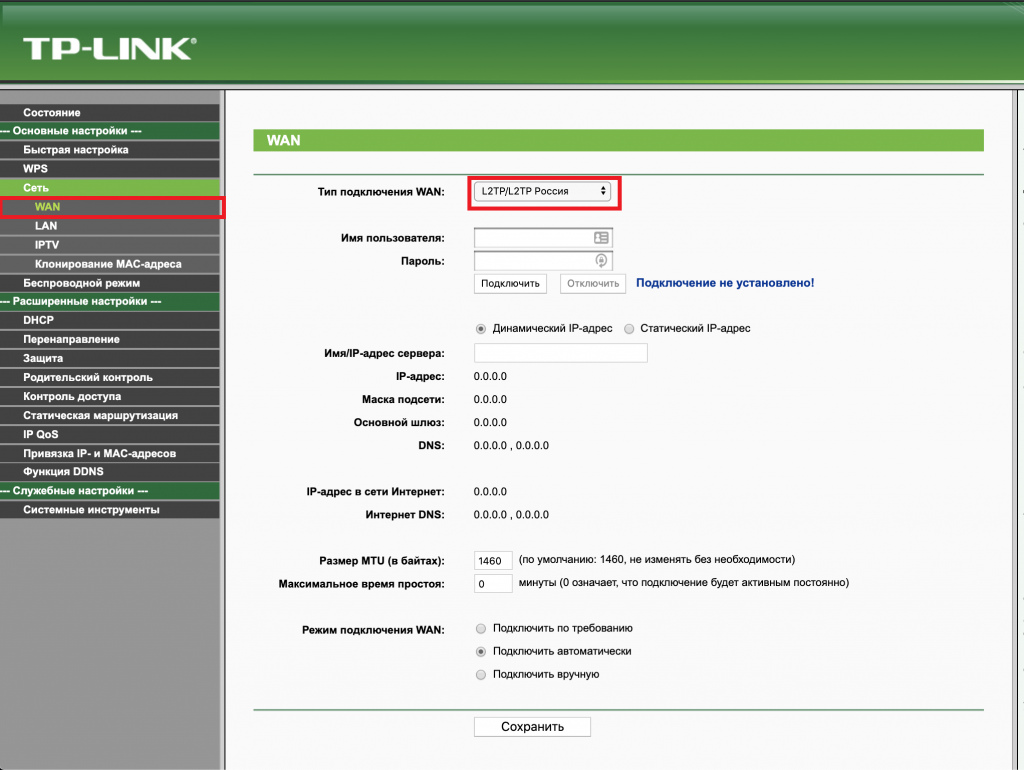 В открывшемся окне необходимо выбрать тип протокола L2TP: